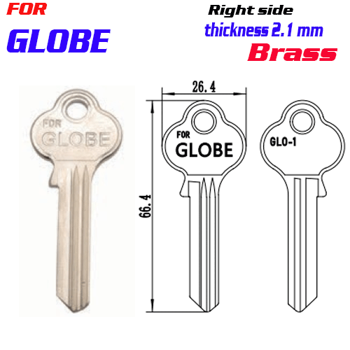 / F-253 Brass Thickness 2.1mm Globe door key blanks Right side
