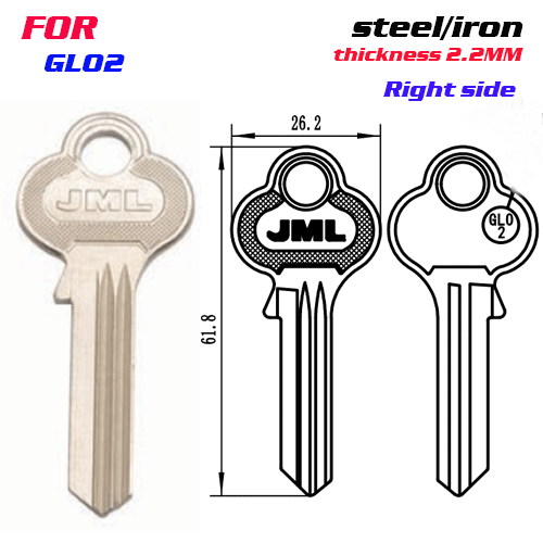 / F-264 Steel Thickness 2.2mm GLO2 door key blanks Right side
