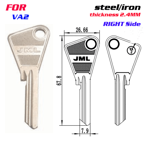 / F-268 Steel Thickness 2.0mm VA2 door key blanks Right side