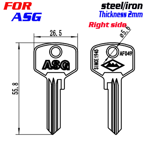 / F-279 Brass Thickness 2.0mm ASG door key blanks Right side