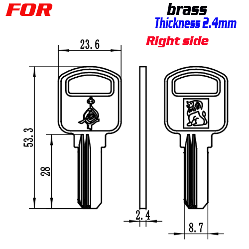 / F-281 Brass Thickness 2.4mm door key blanks Right side