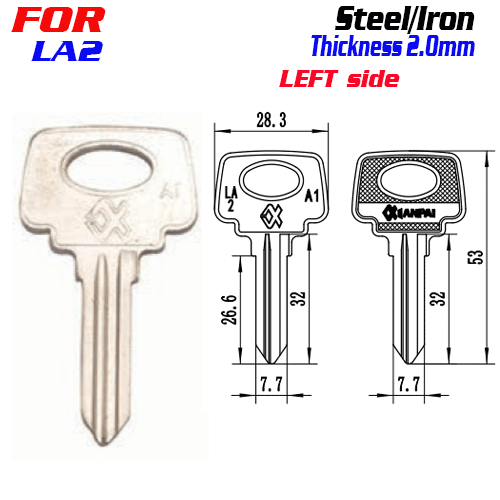 / F-283 Steel Thickness 2.0mm LA2 door key blanks left side
