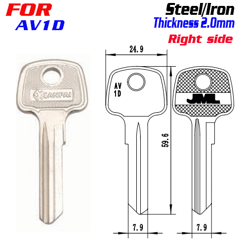 F-290 Steel Thickness 2.0mm AV-1D door key blanks Right side