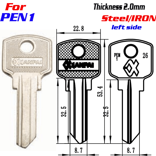 / F-307 Steel Thickness 2.0mm pen-1 door key blanks left side