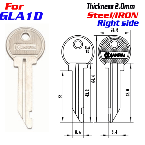 / F-315 Steel Thickness 2.0mm GLA1D door key blanks Right side