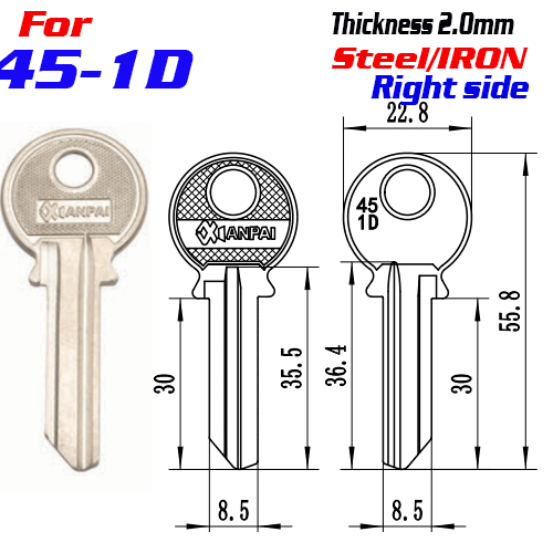 / F-323 Steel Thickness 2.0mm 45-1D door key blanks Right side