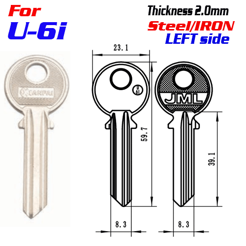 / F-324 Steel Thickness 2.0mm U-6I door key blanks LEFT side