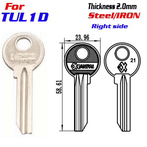 / F-338 Steel Thickness 2.0mm TUL1D door key blanks Right side