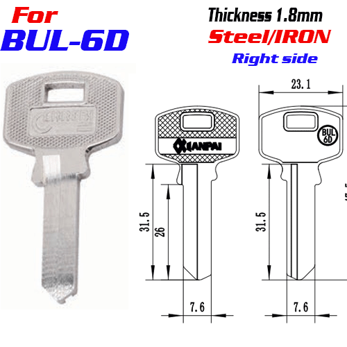 / F-348 Steel Thickness 1.8mm BUL-6D door key blanks Right Side