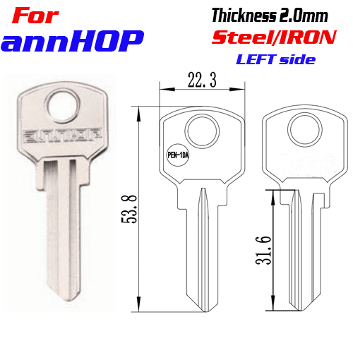 / F-356 Steel Thickness 2.0mm annHOP door key blanks left Side