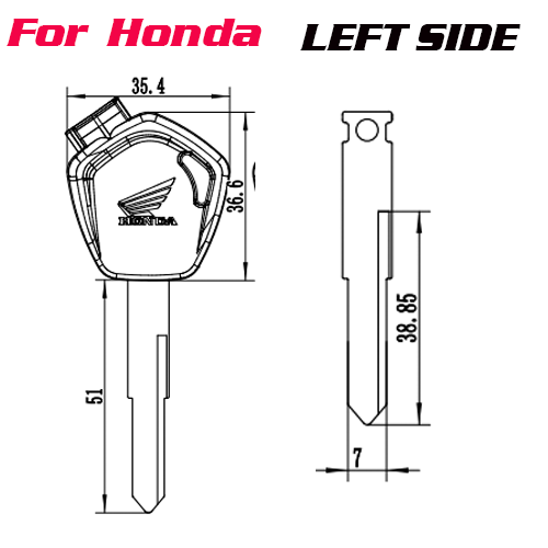 Z-030A Factory-Direct Honda Motorcycle Key Blank Left side