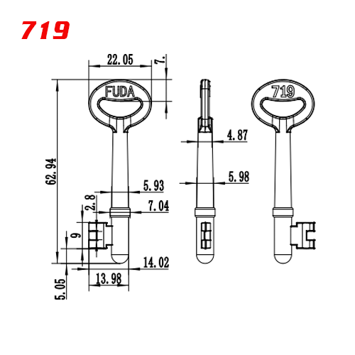 / S-028 Number 719 Zinc alloy key blank for door locks
