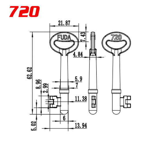 / S-029 Number 720 Zinc alloy key blank for door locks
