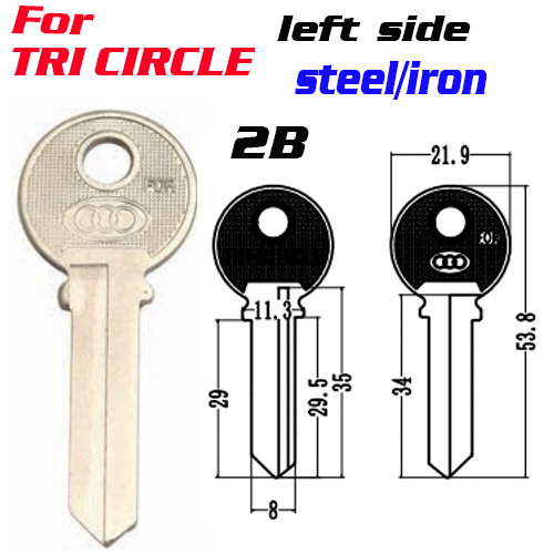 / T-021 Iron Steel TRI CIRCL 2B door key blank left side