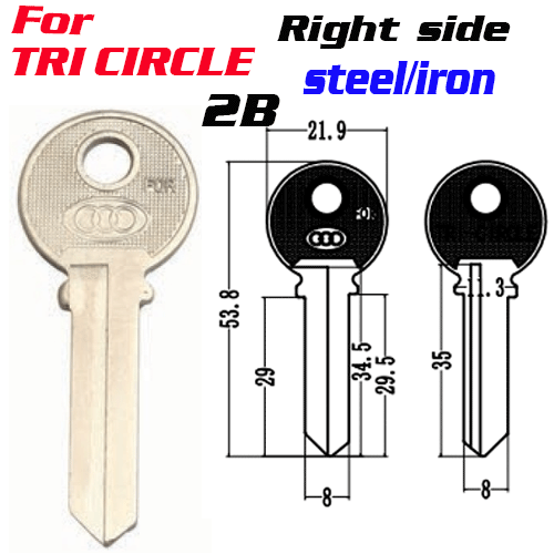 / T-024 Iron steel TRI CIRCL 2B door key blank Right side
