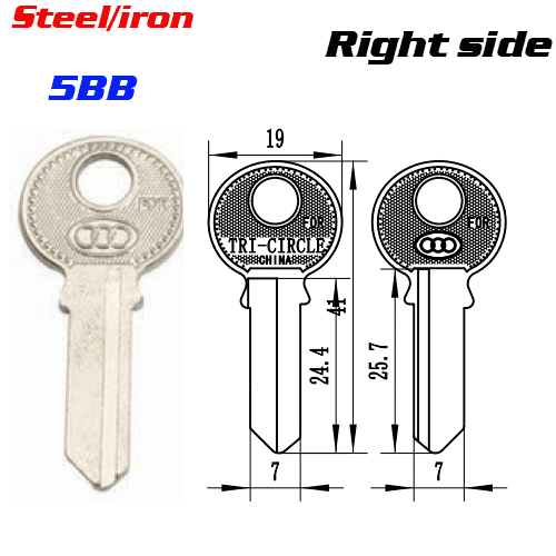 T-032 Steel Iron 5BB door key blank Right side Wholesale