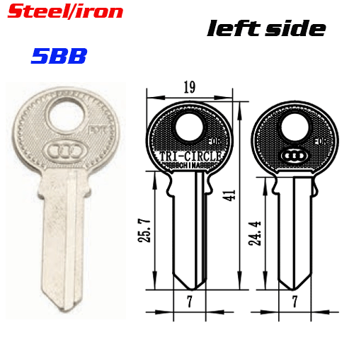 / T-030 Steel Iron 5BB door key blank LEFT side Wholesale