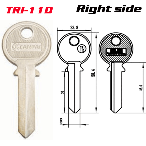 T-020 Iron TRI CIRCL key blanks for distributors RIGHT side