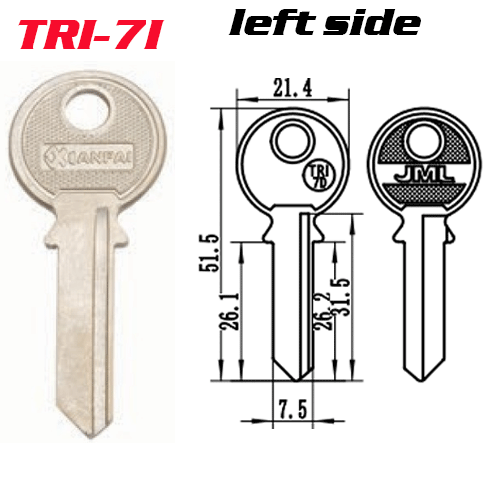 / T-042 Steel Iron TRI7i door key blank LEFT side Wholesale