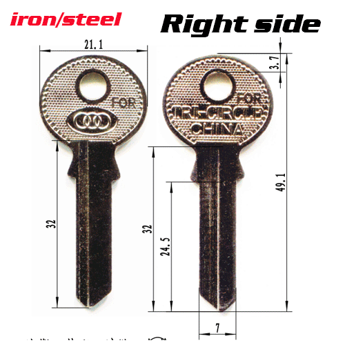 T-043 Steel Iron TRI7D door key blank Right side Wholesale