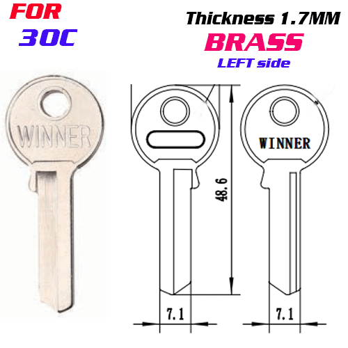 T-056 Brass 30C door key blank LEFT side Wholesale