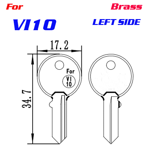 T-059 Brass VI10 door key blank LEFT side Wholesale