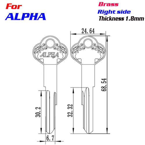 / M-101 Brass Thickness 1.8mm ALPHA door key blanks Right side